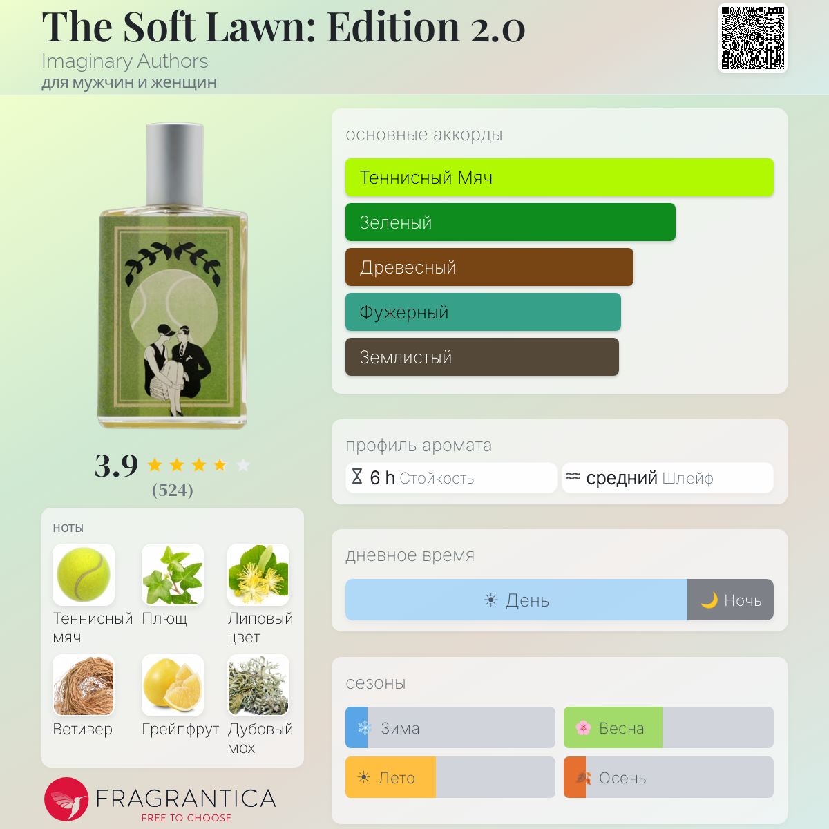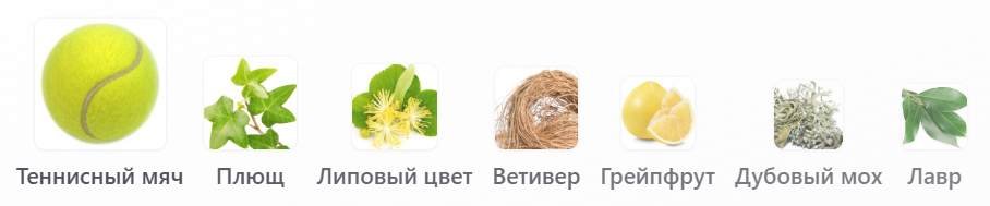 Ноты: Теннисный мяч, Плющ, Липовый цвет, Ветивер, Грейпфрут, Дубовый мох и Лавр.