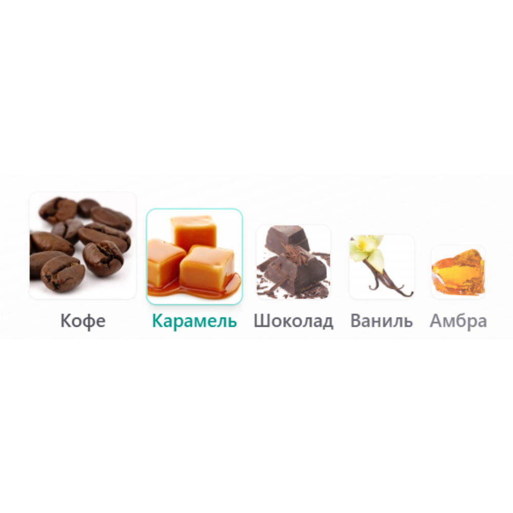 Композицию составляют следующие ноты и аккорды: Амбра, Какао, Карамель, Кофе и Ваниль.
