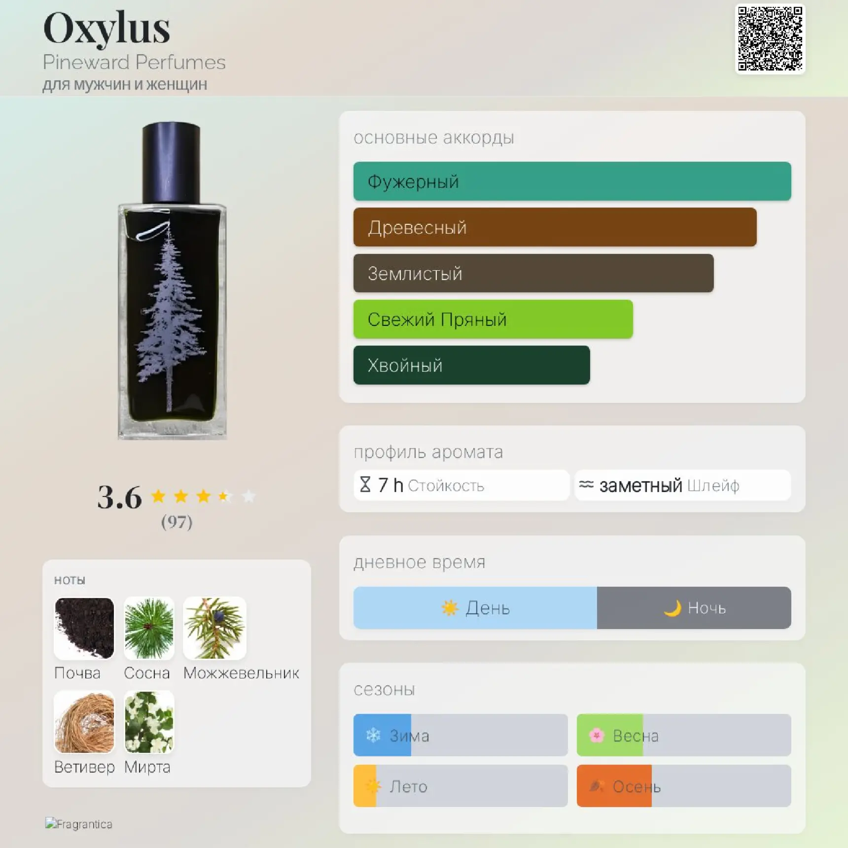 Ноты: хвоя, можжевеловые ягоды, ветивер, мирт, почва, болотная вода.
